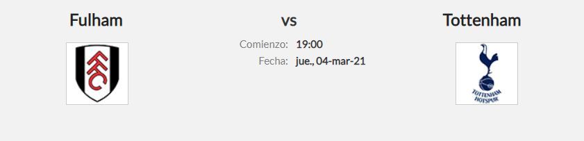 Fulham vs Tottenham. Jueves, 4 de marzo, a las 19:00.