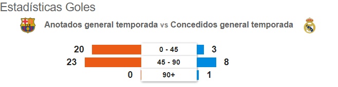 Los culés reparten sus goles en ambas partes (20 en la primera y 23 en la segunda).