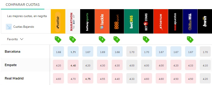 Comparador con las mejores cuotas de apuestas para el partido.